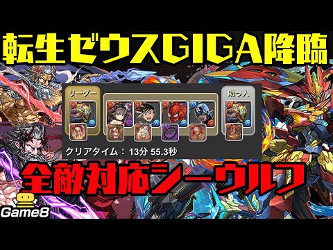 シーウルフを使った転生ゼウスGIGA降臨の周回編成を紹介しています。全ての敵に対応可能で、13分切りも見込めます( ‘ω’)b